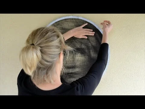 Son fil, qu'elle tend à la main aux crochets métalliques sur le pourtour du cadre, dessine à lui seul le portrait et prend l’aspect d’une toile d'araignée.